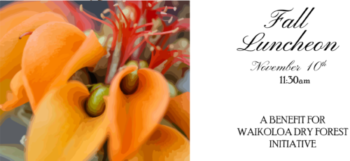 Are you looking for a sustainable way to support the health of our dry forest while enjoying a delicious lunch, sipping champagne, and bidding on treasures you’ll find nowhere else? Of course, you are and we think you’ll love our annual Fall Luncheon at the Dusty Donkey Emporium! It is going to be a fun-filled event that will benefit the Waikoloa Dry Forest Initiative!
