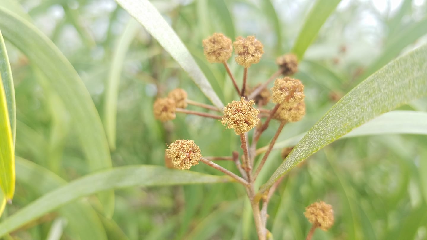 Koai‘a is another native species that comes from the Fabaceae (Pea) family of plants. Many people are familiar with Acacia koa, the typical forest koa that is revered around the world as one of the most beautiful hardwoods in existence. Koai‘a is in the same genus, but grows in much drier conditions throughout the Hawaiian Islands. Existing from 150’ to roughly 4000’ elevation on leeward coasts, Koai‘a is a small tree that grows to heights of 15’ to 30’ and a spread of up to 20’. The true leaves of both Koa and Koai’a are found on younger plants and new shoots of adults and are fleshy green compound leaves. The adult photosynthetic structures, called phyllodes, are actually modified stems that become flat and hook shaped as the tree matures. Next time you are around Koai‘a, take some time to look for both structures! Flowers appear as a pale yellow to white “puffs” which ultimately result in seed pods with vertically arranged seeds.